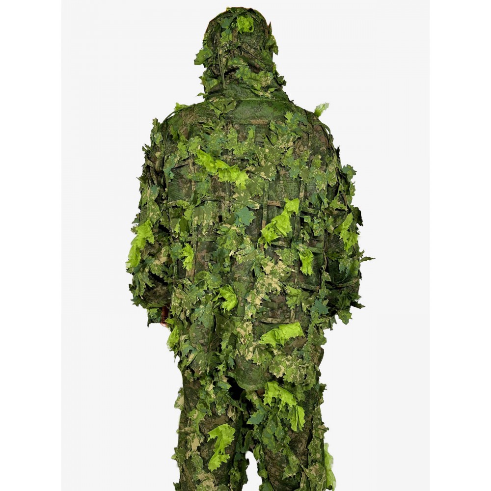 Equipped with an innovative elasticated retention system and webbing, the suit offers adaptability. Users can integrate field vegetation or crafting materials to enhance concealment. The oversized hood accommodates helmets, or can be pulled over rifle scopes providing extra coverage. The dual-axis adjustment ensures a snug fit for optimal comfort and visibility.