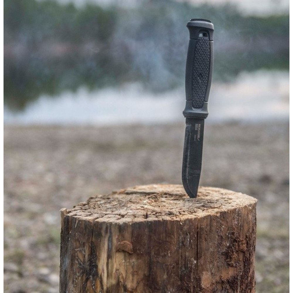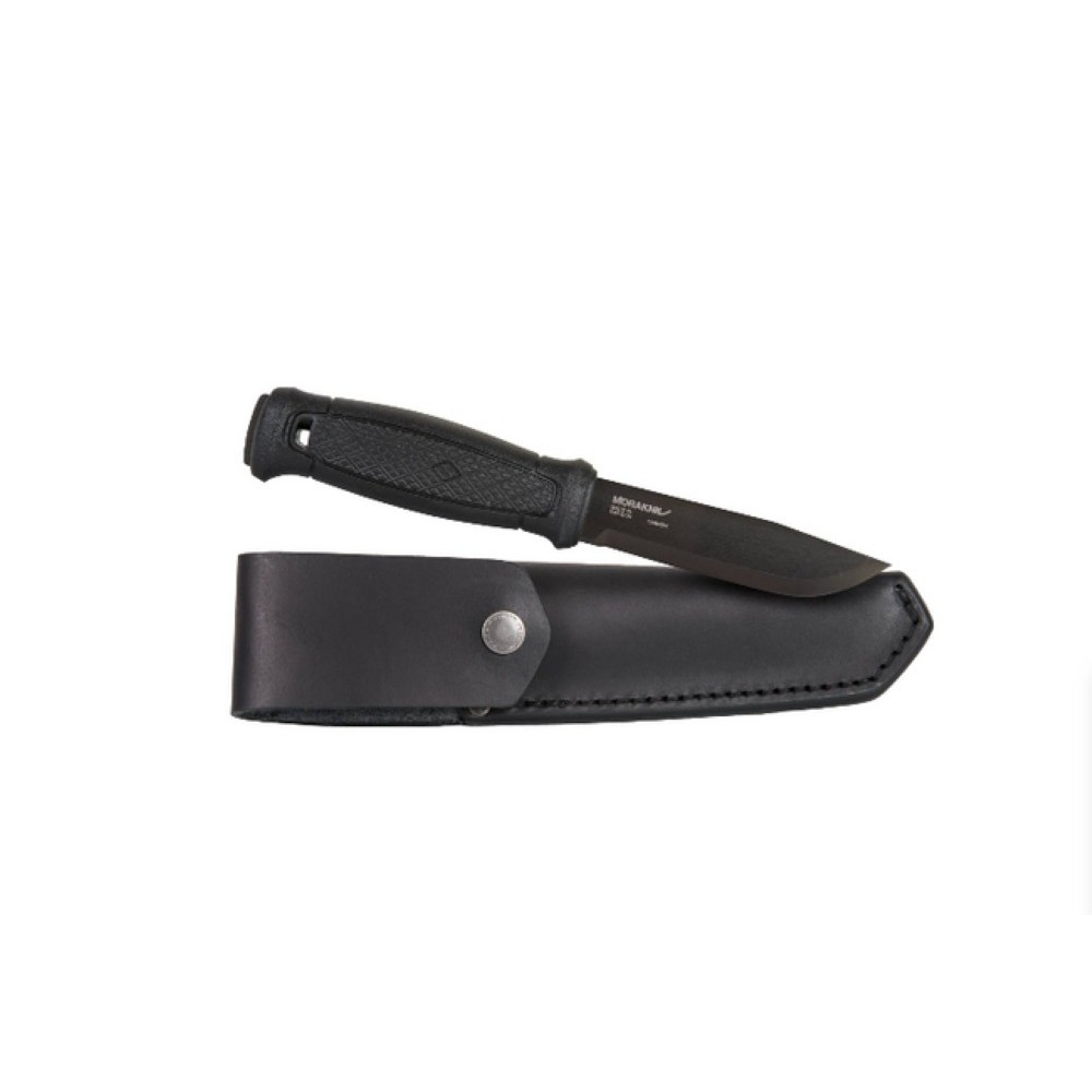 Built for demanding tasks and long-term reliability, the Morakniv Garberg Black C is a full-tang carbon steel knife engineered to deliver confident performance in challenging situations. Its robust construction, precision grind, and high-quality materials make it a trusted option for users who require uncompromising strength and dependable cutting ability. Paired with an elegant and durable leather sheath, it offers both functionality and craftsmanship in a single package.